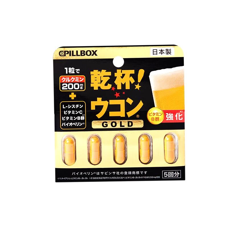 日本PILLBOX干杯EX姜黄解酒丸黄金版5粒